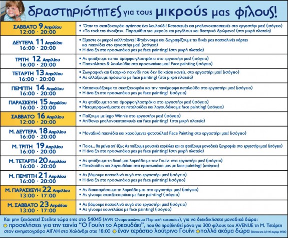 Το πρόγραμμα με τις δραστηριότητες για τους μικρούς μας φίλους