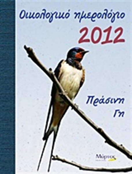 Ο πλανήτης Γη, συνεχίζει την πορεία του στο χρόνο κι εμείς θαυμαστές της ομορφιάς του και λάτρεις της ευημερίας του, σας παρουσιάζουμε το νέο “Οικολογικό ημερολόγιο- Πράσινη γη του 2012”. Στις όμορφες σελίδες του, θα πληροφορηθείτε για τις προσπάθειες που γίνονται από επίσημους φορείς κι από οργανώσεις για την αποκατάσταση του φυσικού περιβάλλοντος και των οικοσυστημάτων. Όλα αυτά, μαζί με τις επισημάνσεις εορτών και ξεχωριστών ημερών, πλαισιωμένα με το γαλάζιο του ουρανού και έναν ύμνο στο φτερωτό του βασίλειο: υπέροχες εικόνες πουλιών της πανίδας μας! Θα μπορούσαμε να βρούμε καλύτερους αγγελιαφόρους για να ακουμπήσουμε στα φτερά τους τα χαρούμενα μηνύματα της ζωής που αντιστέκεται στη φθορά;