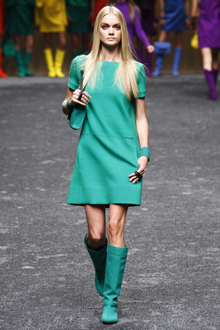 Μαζί με τα έντονα χρώματα επιστρέφουν τα ταγιέρ, τα μίνι φορέματα σε γραμμή Α, με στενούς ώμους και στρογγυλό γιακά. Επίσης οι ασορτί συνδυασμοί. Φορέστε ψηλές μπότες στην ίδια απόχρωση με το μίνι φόρεμα και το κοντό παλτό.
