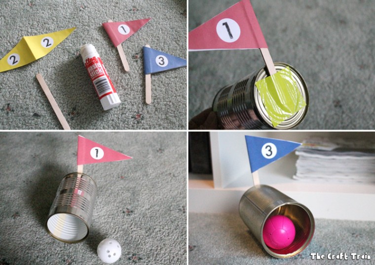 Άλλο ένα άθλημα το οποίο είναι φτιαγμένο για εξωτερικό χώρο, αλλά μπορεί πολύ εύκολα να σας διασκεδάσει και στο σπίτι. Θα χρειαστείτε μεταλλικά κουτάκια, γλωσσοπίεστρα και χαρτόνια κομμένα σε σχήμα σημαίας. Κολλήστε τα σημαιάκια στο πίσω μέρος των κουτιών, οργανώστε την πίστα όπως σας αρέσει και με το μπαστούνι του γκόλφ σας (το οποίο μπορεί να είναι και η σκούπα σας) στοχεύστε και… σκοράρετε!