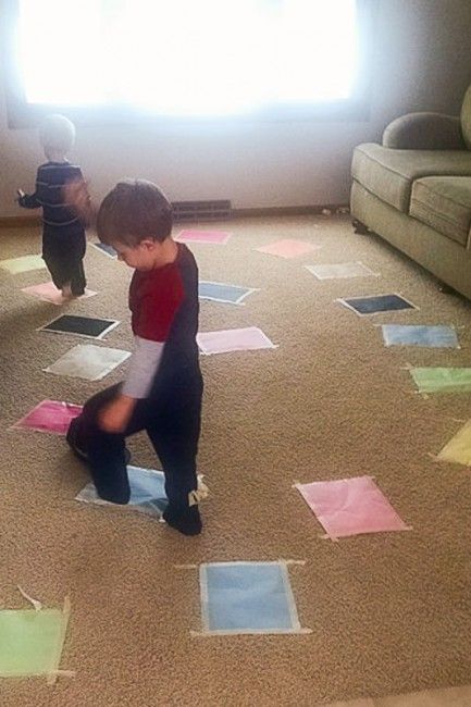 Όποιος πατήσει στο χαλί χάνει το παιχνίδι! Κολλήστε το πάτωμα χρωματιστά χαρτόνια ή ακουμπήστε σε διάφορα σημεία μαξιλάρια και πείτε στα παιδιά ότι πρέπει να πατούν μόνο πάνω σε αυτά, διαφορετικά… καίγονται! Για να γίνει ακόμα πιο διασκεδαστικό το παιχνίδι βάλτε δυνατά μουσικής αγωνίας…