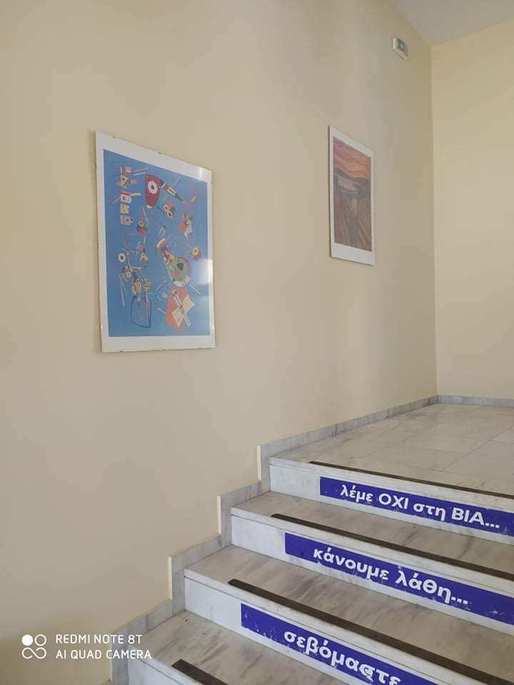 Έχοντας την πεποίθηση ότι η τέχνη είναι ο μόνος δρόμος για να διδάξουμε στα παιδιά την Αισθητική που αυτόματα οδηγεί στο ήθος, την αξιοπρέπεια και την απόκτηση παιδείας ονειρευτήκαμε ένα σχολείο γεμάτο τέχνη και πολιτισμό, γεμάτο ομορφιά και ελευθερία ως αντίβαρο των όσων σήμερα βιώνουν τα παιδιά. Έτσι λοιπόν επιλέξαμε έργα Ελλήνων και ξένων καλλιτεχνών τα οποία τοποθετήσαμε σε όλους τους χώρους του σχολείου ώστε τα παιδιά να έρχονται καθημερινά σε επαφή με τα σημαντικότερα έργα των μεγαλύτερων σύγχρονων ζωγράφων και ασυνείδητα να συνομιλούν μαζί τους.