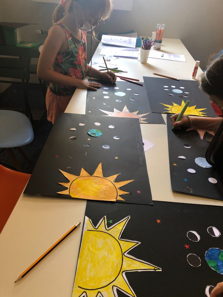 Στο εργαστήριο Αστρονομίας που διεξάγεται στο σχολείο μας υπό την καθοδήγηση του Δρ. Αστροφυσικής Παν/μιου Αθηνών Αντώνιου Αντωνίου και με εισηγήτριες την Εύα Λέφα, φυσικό Ph.D Αστροφυσικής και την Ελένη Λαβασά, φυσικό, MSc Διαστημικής Επιστήμης τα παιδιά ως μικροί εξερευνητές έρχονται σε επαφή με τον μαγικό κόσμο του Διαστήματος που εκτείνεται γύρω μας. Κατανοώντας, δημιουργώντας και διασκεδάζοντας ξεναγούνται στις γειτονιές του σύμπαντος, από τον Πλανήτη μας, τη Γη, μέχρι τα μακρινά άστρα. Δουλεύοντας σε ομάδες τα παιδιά συμμετέχουν στα πρώτα τους διαστημικά πειράματα και φτιάχνουν με τα ίδια τους τα χέρια μικρές αστρονομικές κατασκευές. Τα μαθήματα είναι βιωματικά και διαδραστικά και εναρμονίζονται με τις αρχές της διερευνητικής μάθησης και της διεπιστημονικότητας στο πνεύμα της εκπαίδευσης STEM(Science, Technology, Engineering and Math).