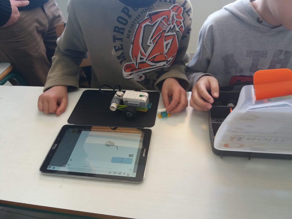 Στο εργαστήριο ρομποτικής τα παιδιά του σχολείου μας κατασκευάζουν, προγραμματίζουν και θέτουν σε κίνηση τα δικά τους ρομπότ. Τα ρομποτάκια μπαίνουν στις αίθουσες και ο ενθουσιασμός είναι μεγάλος. Το σχολείο έχει εξοπλιστεί με τα κιτ «lego we do 2» και τάμπλετ και τα παιδιά χωρισμένα σε ομάδες φτιάχνουν, προγραμματίζουν και βάζουν σε κίνηση μια καινούργια κατασκευή.