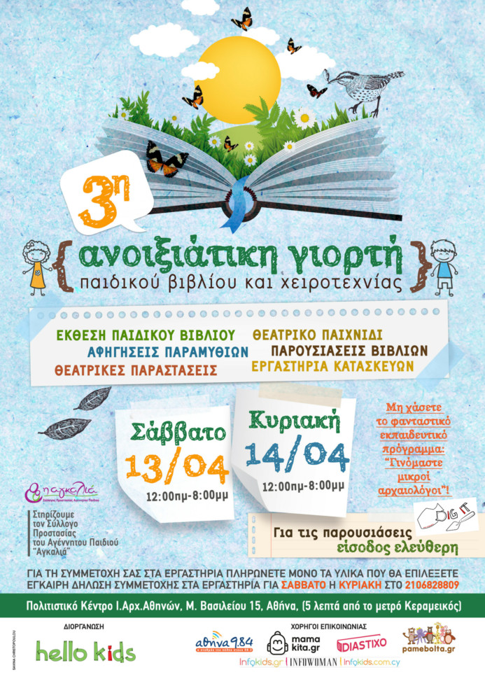 Έκθεση παιδικού βιβλίου, θεατρικό παιχνίδι, αφηγήσεις παραμυθιών, παρουσιάσεις βιβλίων, θεατρικές παραστάσεις και όχι μόνο!