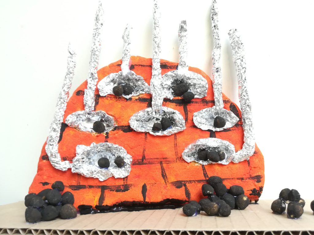 Τι είναι πιο δυνατό: το τούβλο, το μαντέμι, ή το κάρβουνο; Δεν έχει σημασία, γιατί όλοι είμαστε διαφορετικοί, αλλά το ίδιο σημαντικοί! Σκίτσα και φωτογραφίες κατευθύνουν τους συμμετέχοντες να φτιάξουν μία εικαστική κατασκευή σε σχέση με το εργοστάσιο φωταερίου αλλά και τη διαφορετικότητα.