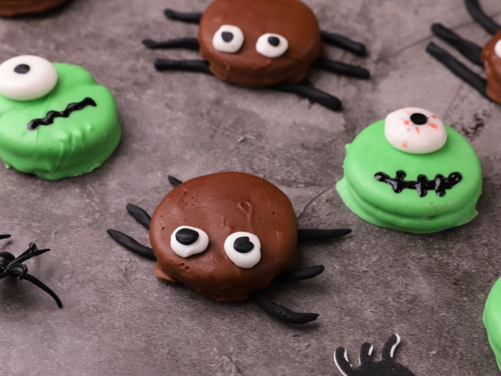 Ψήστε απλά μπισκότα βουτύρου ή σοκολάτας και, όσο είναι ακόμα ζεστά, προσθέστε επάνω μικρά ζαχαρωτά μάτια (τα βρίσκετε στα σούπερ μάρκετ ή στα ζαχαροπλαστεία). Μια άλλη καλή ιδέα είναι να γεμίσετε τα μπισκότα με ταχίνι κακάο και να προσθέσετε και δοντάκια. Μπορείτε να τα φτιάξετε και με τα παιδιά — διασκεδαστικό και πανεύκολο!