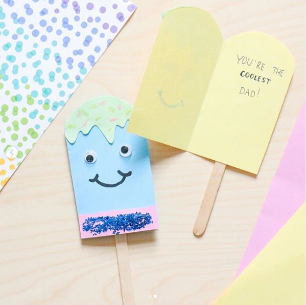 Πώς θα τα φτιάξετε: Διπλώστε στα δύο τα χρωματιστά χαρτιά και με το ψαλίδι σας κόψτε τις άκρες και στρογγυλέψτε το επάνω μέρος. Έπειτα, διαλέγοντας ένα χαρτί με άλλο χρώμα κόψτε το με τέτοιο τρόπο ώστε να μοιάζει με υγρό που κυλά πάνω στο χαρτί. Περιχύστε το με λίγη κόλλα γκλίτερ και αφήστε το να στεγνώσει. Σχεδιάστε με το μολύβι και τον μαρκαδόρο σας το χαμόγελο και κολλήστε τα μάτια στην κάρτα.