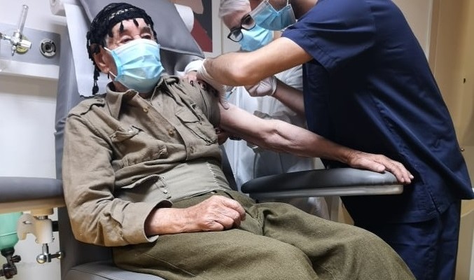 *Στην κεντρική φωτογραφία βλέπουμε τον κ. Πανταλό Ανδρόνικο, 100 χρονών, ο οποίος συνοδευόμενος από την κόρη του εμβολιάστηκε προ ημερών στο Γενικό νοσοκομείο Ρεθύμνου. Πηγή: flashnews.gr