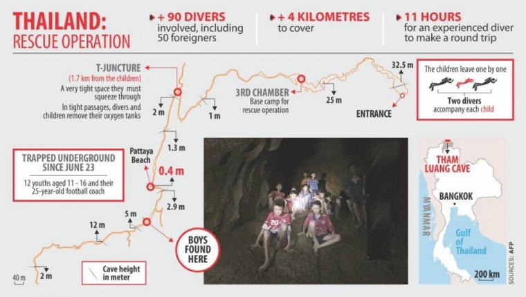 Παγκόσμια συγκίνηση έχει προκαλέσει η προσπάθεια απεγκλωβισμού των 12 αγοριών και του προπονητή τους, οι οποίοι παρέμεναν παγιδευμένοι σε σπήλαιο στην Ταϊλάνδη από τις 26 Ιουνίου.