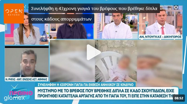 Ραγδαίες οι εξελίξεις για την εγκατάλειψη του παιδιού δίπλα σε κάδο έξω από το Συμμαχικό Νεκροταφείο στον Άλιμο.