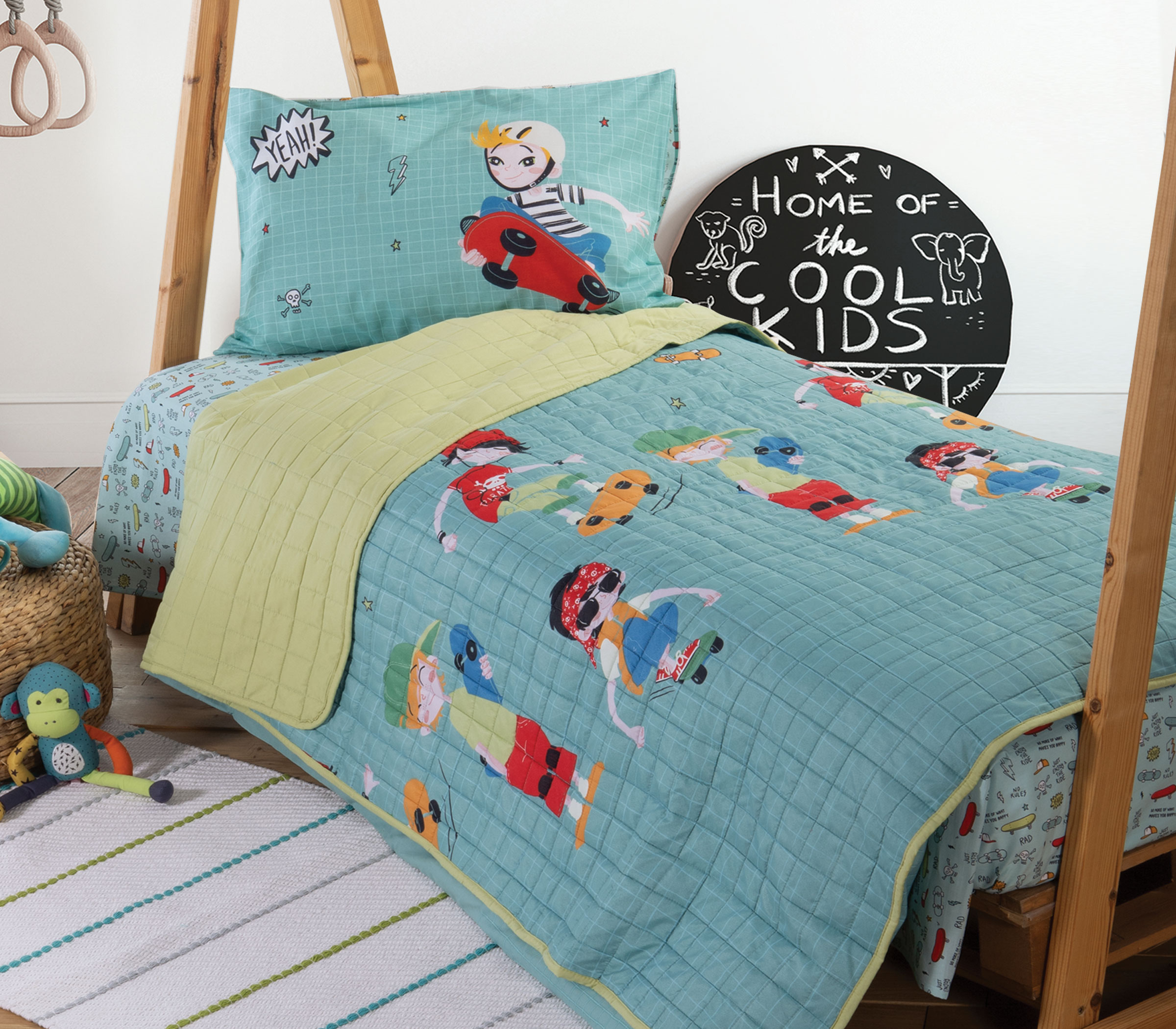 Ένα καινούργιο κουβερλί, μια πικέ κουβέρτα, δύο μαλακά μαξιλάρια με υπέροχα σχέδια και prints, και σεντόνια με ενυπωσιακά τυπώματα αρκούν για να αποπνέει μια αύρα ανανέωσης το παιδικό δωμάτιο και να δημιουργηθεί μια παιχνιδιάρικη ατμόσφαιρα που εγγυάται όνειρα παραμυθένια!