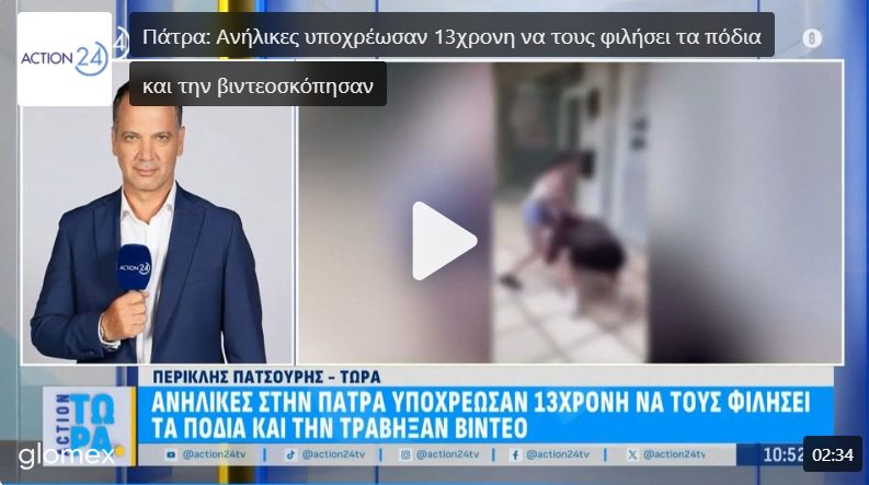 Άλλο ένα περιστατικό ανήλικης παραβατικότητας συνέβη στην Πάτρα όταν τέσσερα κορίτσια υποχρέωσαν 13χρονη να σκύψει και να τους φιλήσει τα πόδια ενώ βιντεοσκοπούσαν την πράξη. Πρόκειται για παιδιά του γυμνασίου σε ακραία πράξη bullying.