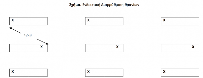 - Οι σχολικές αίθουσες πρέπει να διαμορφωθούν έτσι ώστε να μεγιστοποιείται η απόσταση μεταξύ των μαθητών στο πλαίσιο του εφικτού, δηλαδή ένας μαθητής ανά θρανίο.