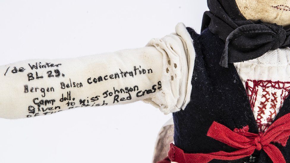 Αυτές οι κούκλες του Ερυθρού Σταυρού κατασκευάστηκαν από Εβραίους κρατούμενους, αφότου απελευθερώθηκε το στρατόπεδο και θα πουληθούν σε δημοπρασία στο Newbery μαζί με ένα κουκλόσπιτο της βικτωριανής εποχής.