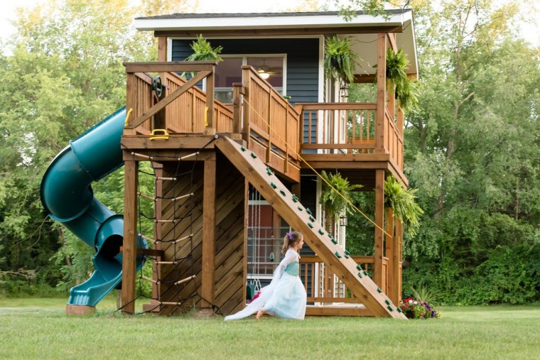 Ο μπαμπάς όχι μόνο έσπευσε να φτιάξει μόνος του το κουκλόσπιτο αλλά απογείωσε την εν λόγω κατασκευή καθώς το απλό κουκλόσπιτο που ζήτησαν οι μικρές εν τέλει κατέληξε να γίνει μια τεράστια ξύλινη κατασκευή με δύο ορόφους, μπαλκόνι και κρεμαστά φυτά να στολίζουν τον εξωτερικό χώρο της κατασκευής. Κάθε όροφος έχει ύψος σχεδόν δυόμισι μέτρα, ενώ οι τοίχοι είναι βαμμένοι στα αγαπημένα χρώματα των κοριτσιών.