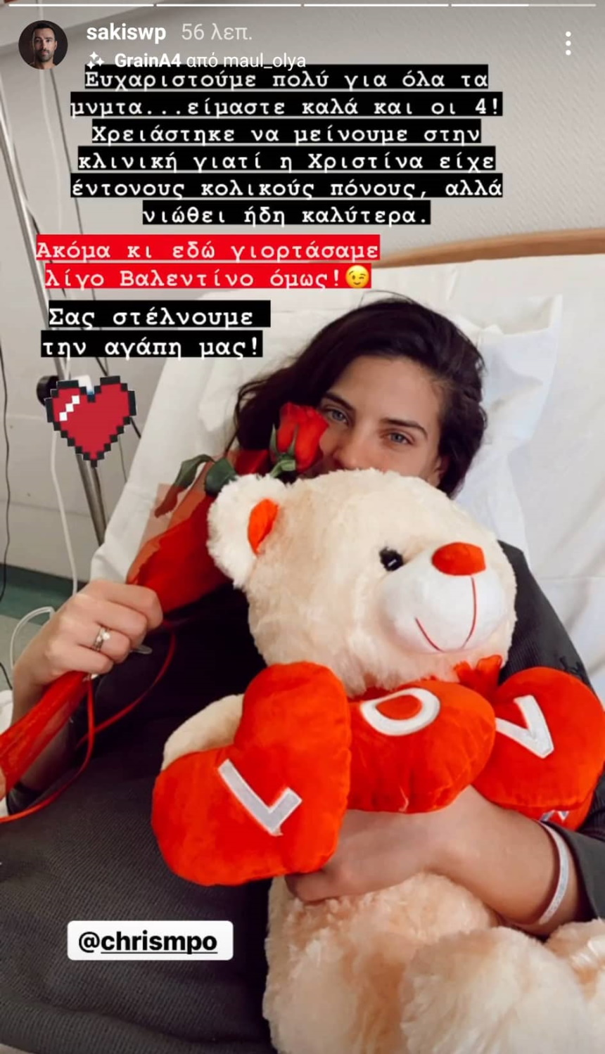 Πριν λίγο, ο σύζυγός της και μέλλων μπαμπάς, Σάκης Τανιμανίδης, με νέα του ανάρτηση πριν λίγο στα Instagram Stories του, ενημέρωσε πως είναι όλα καλά με την υγεία της γυναίκας του και ο λόγος που βρέθηκαν στο νοσοκομείο ήταν κάποιοι έντονοι κολικοί πόνοι που ένιωσε η Χριστίνα.
