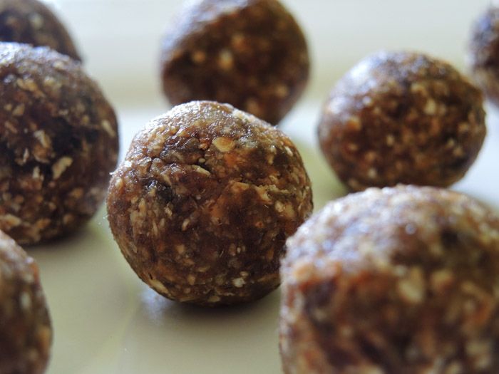 - Πλάστε μπαλίτσες στο μέγεθος ενός καρυδιού και κυλήστε τις σε τριμμένη καρύδα, κακάο ή σουσάμι.
