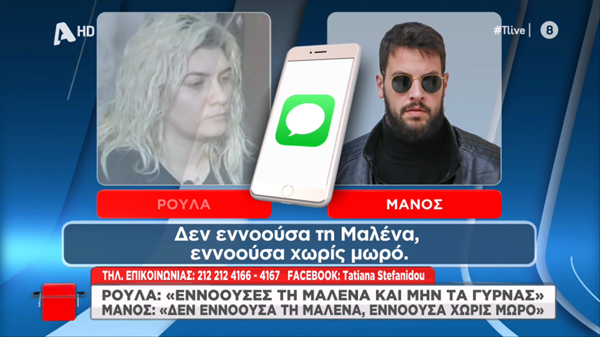Το φως της δημοσιότητας είδαν σήμερα νέοι διάλογοι μεταξύ της Ρούλας Πισπιρίγκου και του Μάνου Δασκαλάκη και αποδεικνύει τις τεταμένες σχέσεις του ζευγαριού λίγο μετά το θάνατο της Μαλένας. Η συνομιλία είναι σοκαριστική, με σκληρούς χαρακτηρισμούς, απειλές και ατάκες όλο νόημα μεταξύ του ζεύγους.