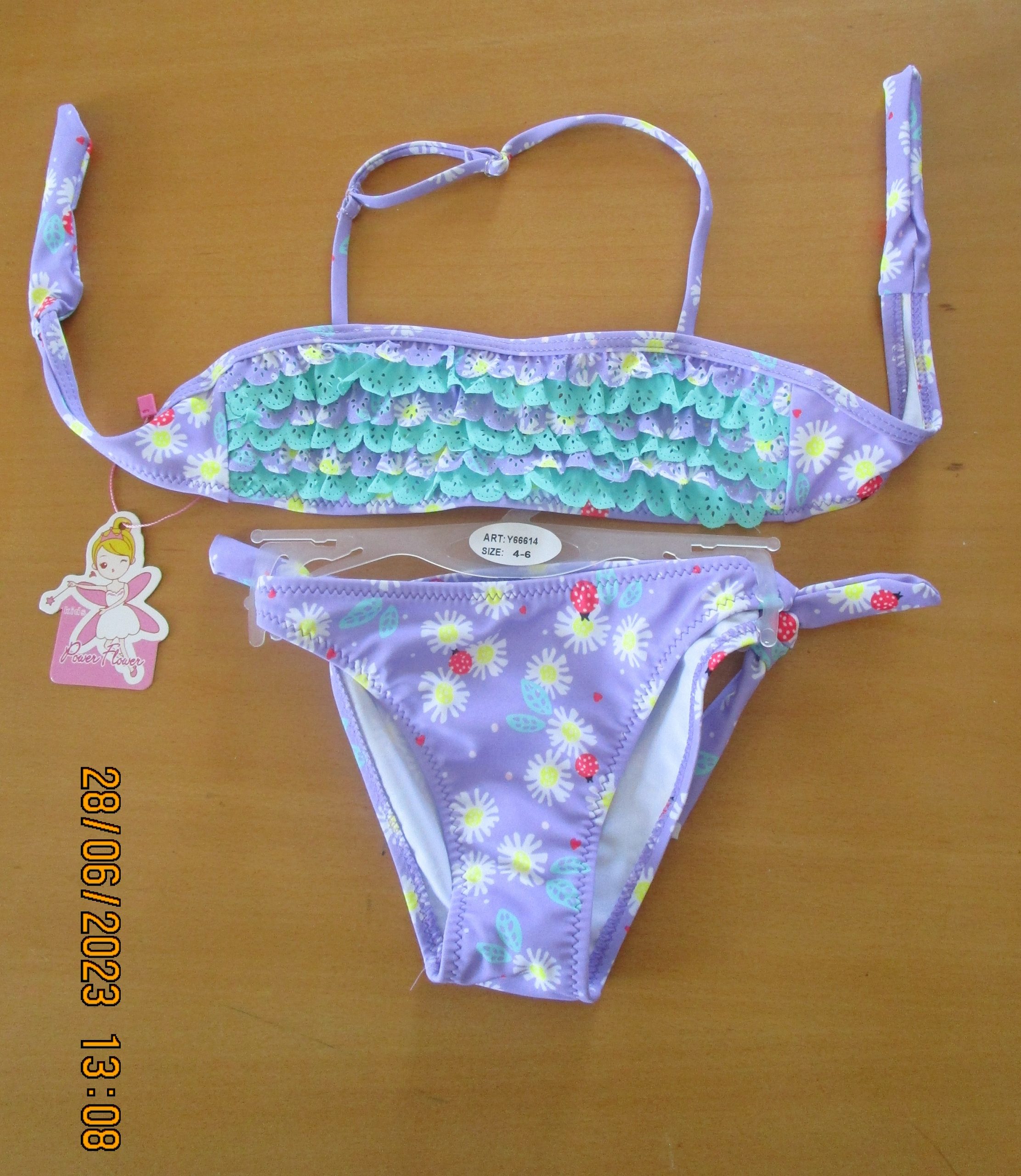 - Παιδικό μπικίνι που προορίζεται για κορίτσια 6 ετών και το πάνω μέρος φέρει λειτουργικά κορδόνια με ελεύθερα άκρα για να δεθούν στην πίσω περιοχή.