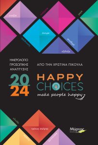 Δεν φτάνει να θέλεις κάτι αρκετά, χρειάζεται και να είσαι συνεπής με τον εαυτό σου σε καθημερινή βάση. Το Ημερολόγιο Happy Choices – Make People Happy που κυκλοφορεί και φέτος από τις Εκδόσεις Μύρτος, θα σε βοηθήσει ακριβώς σε αυτό, να χτίσεις συνέπεια και να αποκτήσεις εμπιστοσύνη απέναντι στον εαυτό σου. Ποιος θα σε βοηθήσει να γίνεις ευτυχισμένη, να έχεις αφθονία και να χτίσεις τα όνειρά σου απολαμβάνοντας την καθημερινότητά σου; Η απάντηση βρίσκεται στη γυναίκα που αντικρίζεις καθημερινά στον καθρέφτη σου. Εσύ!