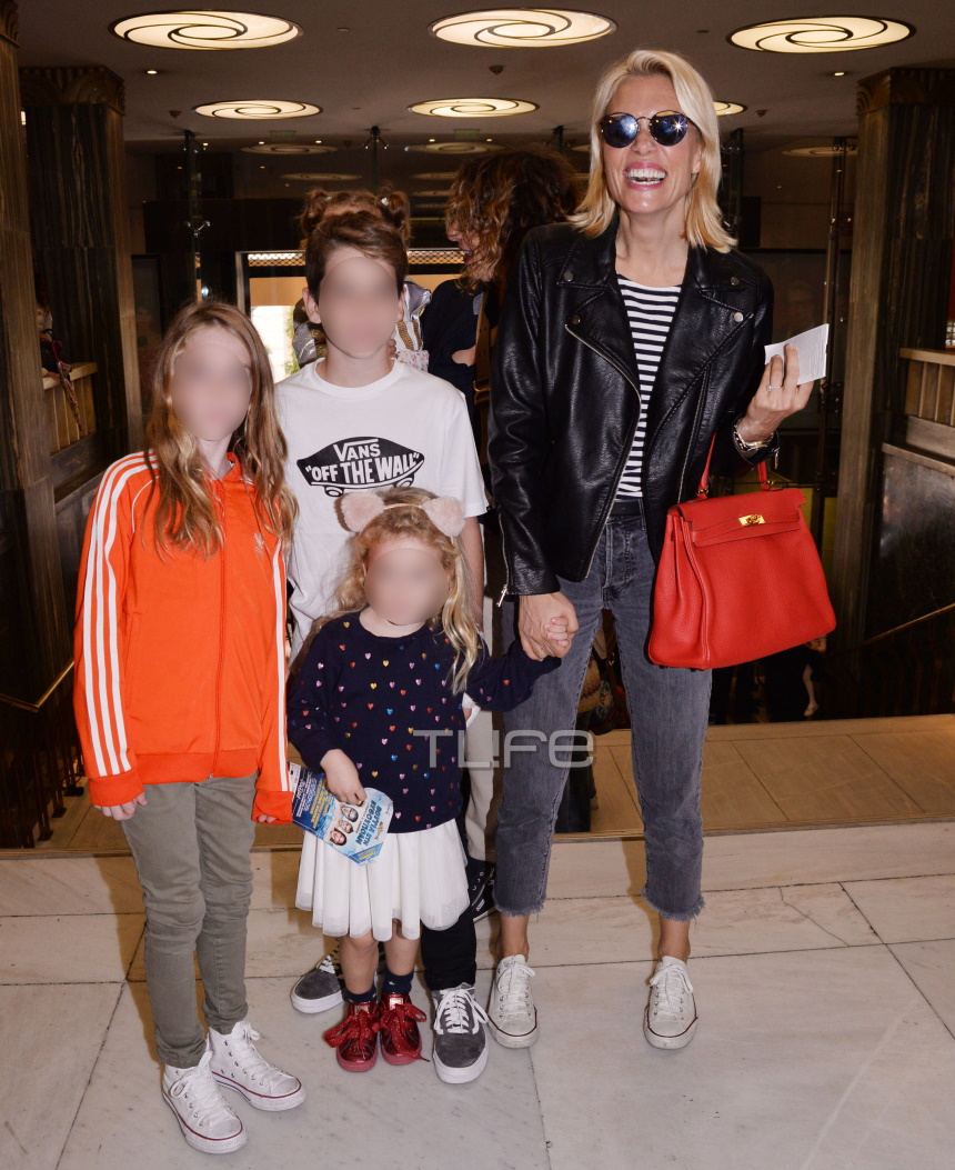 Έτσι, είδαμε την Βίκυ Καγιά να απολαμβάνει τη “Βουτιά στη Βυθούπολη” του Γ. Λεμπέση στο Θέατρο Παλλάς με την κόρη της Μπιάνκα και τα παιδιά του συζύγου της, Ηλία Κρασσά, από τον προηγούμενο γάμο του: