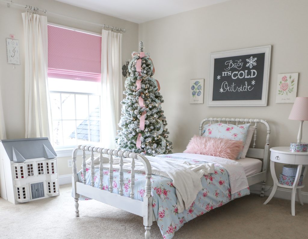 «Το δωμάτιο της κόρης μου ξεκίνησε αρκετά girly με vintage ροζ και μπλε γαλάζιους τόνους στο κρεβάτι της. Ήταν πολύ ενθουσιασμένη που είχε το δικό της χριστουγεννιάτικο δέντρο και ήθελε να ταιριάει με το υπόλοιπο δωμάτιο. Έτσι βρήκαμε ένα δέντρο και του προσθέσαμε στολίδια στα ίδια χρώματα. Ταίριαξε τέλεια η διακόσμηση και είχε ξετρελαθεί έχοντας το δικό της δέντρο με τα φωτάκια του», ανέφερε.