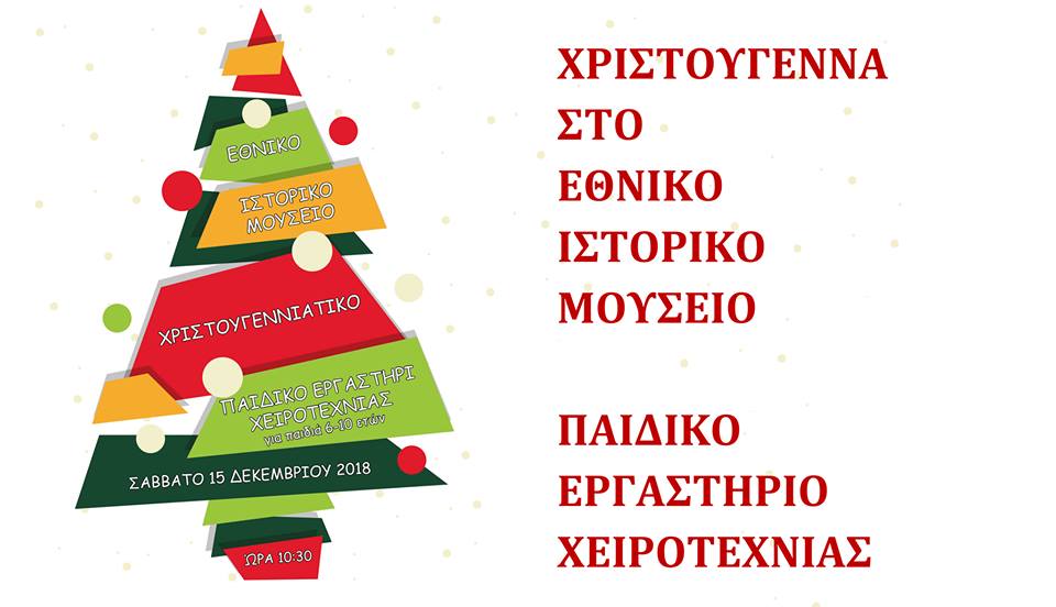 Το Σάββατο 15 Δεκεμβρίου στις 10:30, στο Εθνικό Ιστορικό Μουσείο διοργανώνεται παιδικό χριστουγεννιάτικο εργαστήριο χειροτεχνίας. Αρχικά θα γίνει σύντομη αναφορά στην ιστορία των καλάντων και στη συνέχεια τα παιδιά θα δημιουργήσουν χριστουγεννιάτικες κατασκευές με απλά υλικά και με την καθοδήγηση συνεργατών του Μουσείου.
