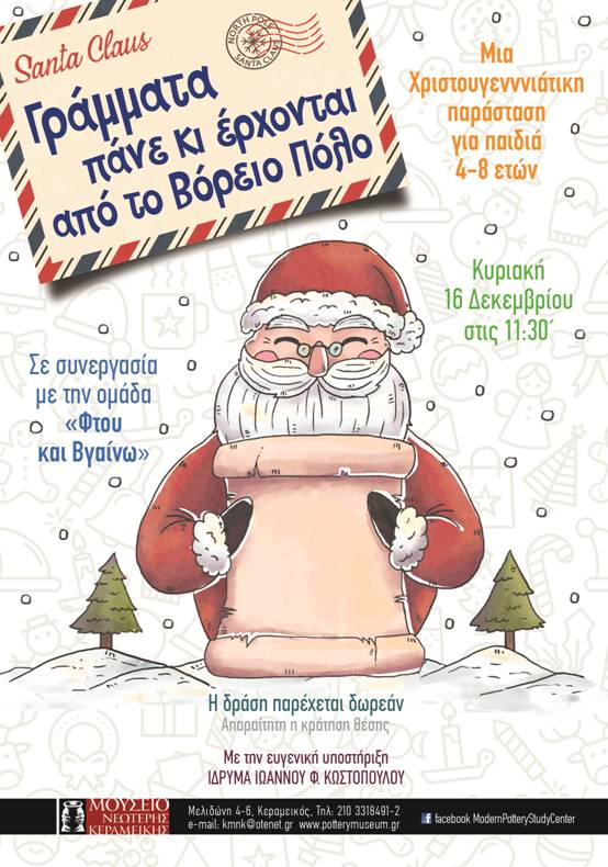 “Γράμματα πάνε κι έρχονται από το Βόρειο Πόλο”, μια χριστουγεννιάτικη παράσταση στο Μουσείο Νεώτερης Κεραμεικής (16/12)