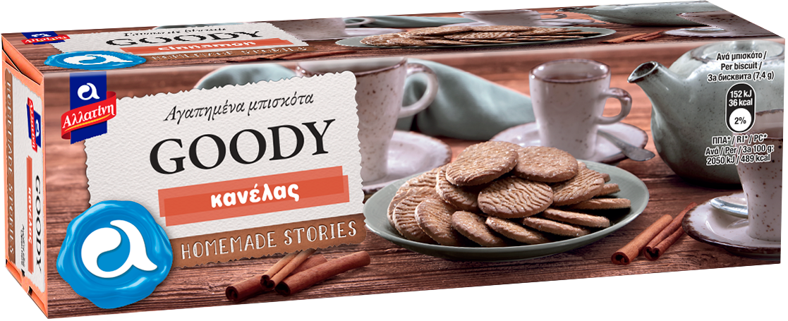 “Αγαπημένα μπισκότα GOODY Κανέλας Αλλατίνη” 185 gr (Ημ/νια Λήξεως: 30/03/2022, Αρ. Παρτίδας L 1226), που παράγεται από την εταιρεία «ELBISCO A.E.».