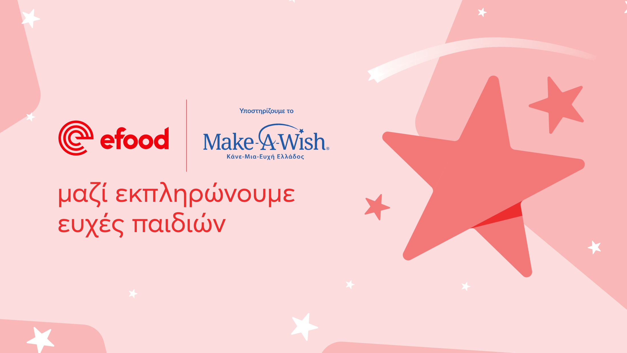Μπες κι εσύ στην εφαρμογή του efood και στήριξε το έργο του Make-A-Wish Ελλάδος. Κάθε δωρεά μας φέρνει πιο κοντά στην πραγματοποίηση μιας ακόμη παιδικής ευχής.