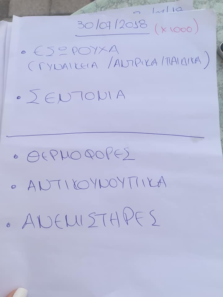 Σύμφωνα με την νεότερη ενημέρωση που λάβαμε στο Infokids.gr αυτά είναι τα είδη που χρειάζονται μέχρι στιγμής σήμερα 30 Ιουλίου στο χώρο για την κάλυψη των αναγκών των πληγέντων είναι τα κάτωθι: