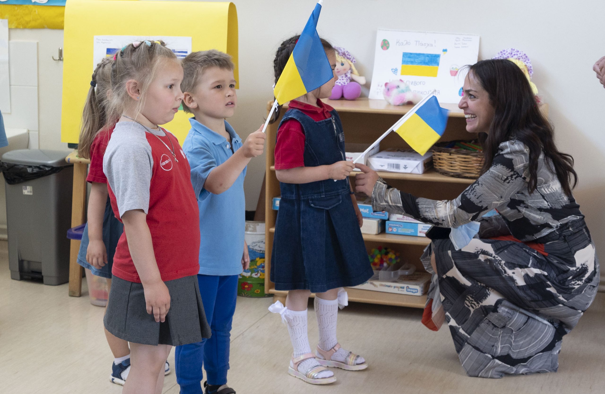 Παρουσία της Υφυπουργού Εργασίας και Κοινωνικών Υποθέσεων, κ. Δόμνας Μιχαηλίδου και εκπροσώπων της Ουκρανικής Πρεσβείας, πραγματοποιήθηκε χθες Τετάρτη 11 Μαΐου στο Νηπιαγωγείο των Εκπαιδευτηρίων Δούκα, μια μικρή και συγκινητική γιορτή για την Ημέρα της Νίκης της Ουκρανίας στον Β’ Παγκόσμιο Πόλεμο.