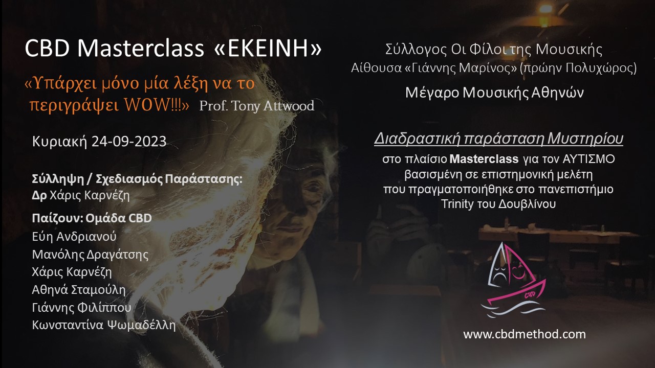 Η διαδραστική παράσταση μυστηρίου “Εκείνη”, που ενθουσίασε ειδικούς θεραπευτές και γονείς και αποθεώθηκε από τον παγκοσμίου φήμης κλινικό ψυχολόγο prof. Tony Attwood, επιστρέφει την Κυριακή 24 Σεπτεμβρίου 2023 στο ΜΕΓΑΡΟ ΜΟΥΣΙΚΗΣ ΑΘΗΝΩΝ (αίθουσα Γιάννης Μαρίνος), λόγω της πρωτοφανούς συμμετοχής που σημείωσε τον περασμένο Μάιο.