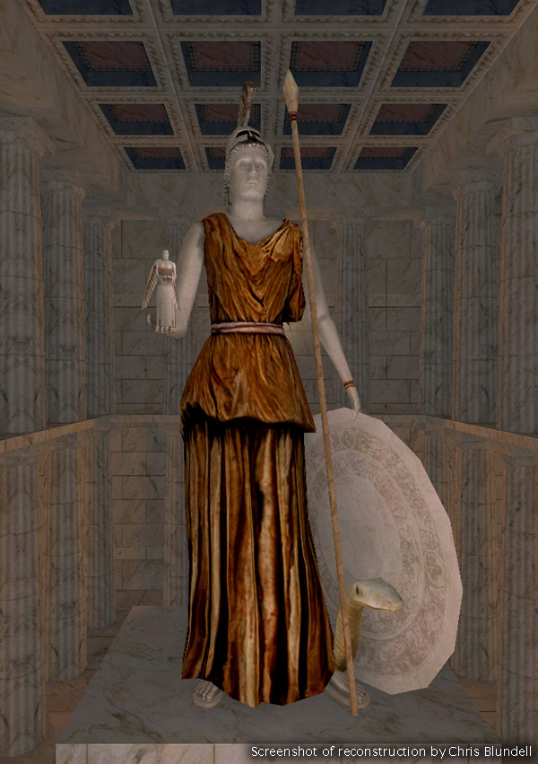 Το λατρευτικό άγαλμα που στήθηκε εντός του Παρθενώνος, έργο του περίφημου γλύπτη Φειδίου, είχε ύψος γύρω στα 12 μ. Ο σκελετός του ήταν ένας τεράστιος ξύλινος ιστός μπηγμένος στο έδαφος. Τα γυμνά μέρη του σώματος της θεάς ήταν καμωμένα από ελεφαντόδοντο, το δέ ένδυμά της από χρυσό.