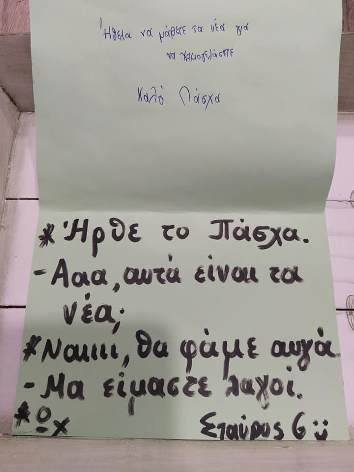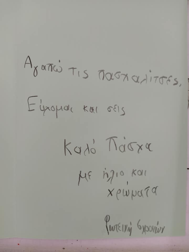 Η αξιόλογη πρωτοβουλία τους αξίζει να αγκαλιαστεί από όλους μας καθώς το μόνο που μας ζητούν είναι να στείλουμε πασχαλινές κάρτες μέσα στις οποίες θα γράψουμε ευχές και λόγια ενθάρρυνσης που θα κρατήσουν συντροφιά στους ασθενείς που τις μέρες των γιορτών θα τις περάσουν στους τέσσερις τοίχους ενός δωματίου σε ένα νοσοκομείο της χώρας μακριά από τα αγαπημένα τους άτομα.