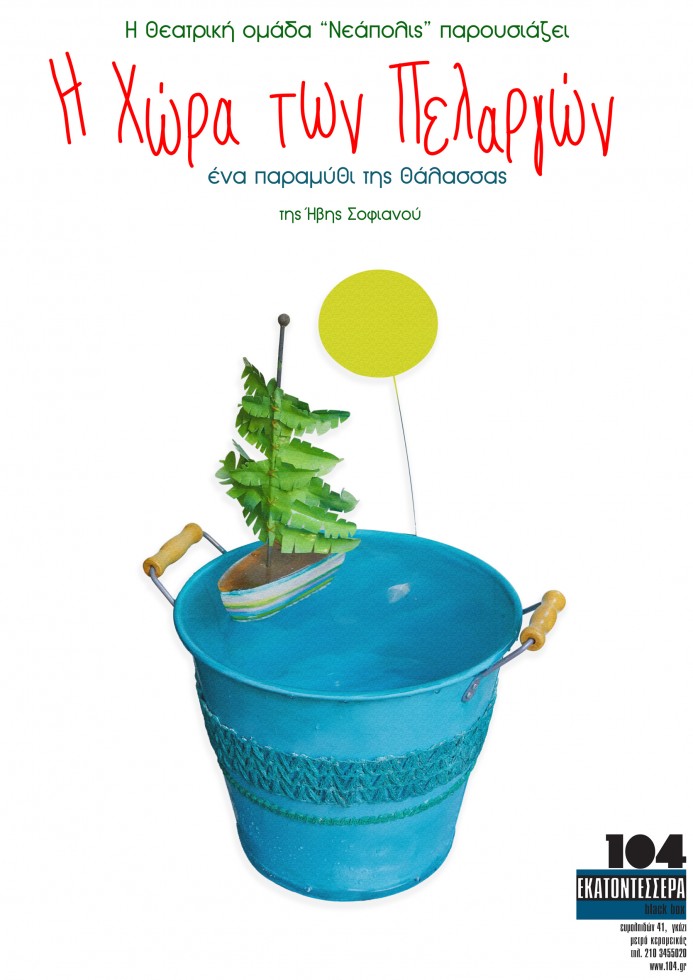 Η θεατρική εταιρεία “Νεάπολις” μετά από δύο χρόνια επιτυχίας με το “Ταξίδι στο κέντρο της γης” του Ιουλίου Βερν, παρουσιάζει στην Κεντρική Σκηνή του Θεάτρου 104, κάθε Κυριακή στις 12:00 μ.μ., τη νέα παραγωγή για τους μικρούς της φίλους “Η χώρα των πελαργών … ένα παραμύθι της θάλασσας” της Ήβης Σοφιανού, σε σκηνοθεσία Αλέξανδρου Κομπόγιωργα. Η Ήβη Σοφιανού, από την οικογένεια Σοφιανού, αγαπητή στην Ελλάδα για τις πρωτοποριακές παραστάσεις κουκλοθεάτρου και για τις μεγάλες τηλεοπτικές επιτυχίες, όπως η “Φρουτοπία” και “Του Κουτιού τα Παραμύθια”, για πρώτη φορά αφήνει το κουκλοθέτρο και γράφει για το παιδικό θέατρο. “Η χώρα των πελαργών … ένα παραμύθι της θάλασσας”, είναι μια μαγική ιστορία με δράση, συγκίνηση και χιούμορ, που θα γοητεύσει τα παιδιά, ενώ παράλληλα μας μεταφέρει μηνύματα αγάπης για τον συνάνθρωπο αλλά και για το περιβάλλον.