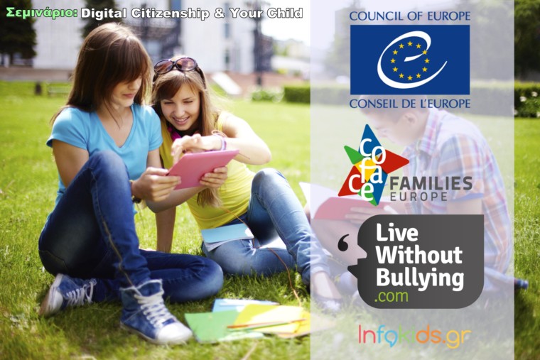 Το Κέντρο Κοινωνικής Δράσης και Καινοτομίας – ΚΜΟΠ με το πρόγραμμα Live Without Bullying, σε συνεργασία με το Συμβούλιο της Ευρώπης και την COFACE, και το Infokids.gr, καλούν τους γονείς σε μία ανοιχτή συζήτηση πάνω στην Εκπαίδευση των αυριανών Ψηφιακών Πολιτών (Digital Citizenship Education). Ομιλητές θα είναι ο Martin Schmalzried, ειδικός επί του θέματος από το Συμβούλιο της Ευρώπης και η Βερόνικα Σαμαρά, Διευθύνουσα Σύμβουλος της Safer Internet Hellas.