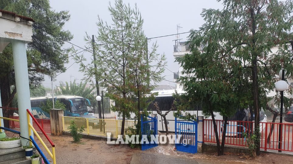 Εκκενώθηκε το νηπιαγωγείο στα Λουτρά Υπάτης στη Φθιώτιδα λόγω της μεγάλης ποσότητας νερού που έχει πλημμυρίσει το προαύλιο του σχολείου, εξαιτίας της κακοκαιρίας «Ιανός».