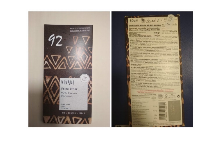 Το προϊόν σοκολάτα μαύρη με 92% κακάο, με την εμπορική ονομασία “VIVANI”, σε συσκευασία των 80γρ, αριθμ. Παρτίδας : L 18303 και ημερομηνία λήξης : 07.2020, το οποίο εισάγεται από τη Γερμανία από την εταιρεία ΒΙΟΑΓΡΟΣ Α.Ε., Βασιλέως Παύλου 2, Κρύα Βρύση Πέλλας.