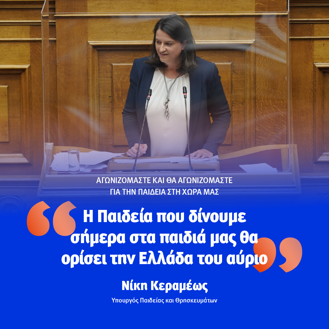Με δέκα αλήθειες απάντησε η Υπουργός Παιδείας και Θρησκευμάτων Νίκη Κεραμέως στις αιτιάσεις της Αντιπολίτευσης εναντίον του νομοσχεδίου ενώπιον της Ολομέλειας της Βουλής. Η κα Κεραμέως κατέδειξε την αναγκαιότητα των ρυθμίσεων που προτείνονται με το νομοσχέδιο, τονίζοντας ότι οραματίζεται ένα εκπαιδευτικό σύστημα που θα ωθεί κάθε νέα και κάθε νέο στο δρόμο της ανέλιξης. Που θα καλλιεργεί την κριτική σκέψη, που θα μαθαίνει στα παιδιά μας πώς να μαθαίνουν, που θα δίνει στους εκπαιδευτικούς μας ένα καλύτερο εκπαιδευτικό σύστημα.