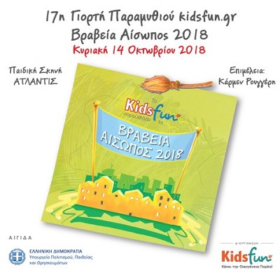 Η στιγμή για τη 17η Γιορτή Παραμυθιού – Βραβεία Αίσωπος 2018 έφθασε. Την Κυριακή 14 Οκτωβρίου στην Παιδική Σκηνή Ατλαντίς στις 12:00 θα γίνει η 17η Γιορτή Παραμυθιού που παρουσιάζει η πολυαγαπημένη μας κα Κάρμεν Ρουγγέρη.
