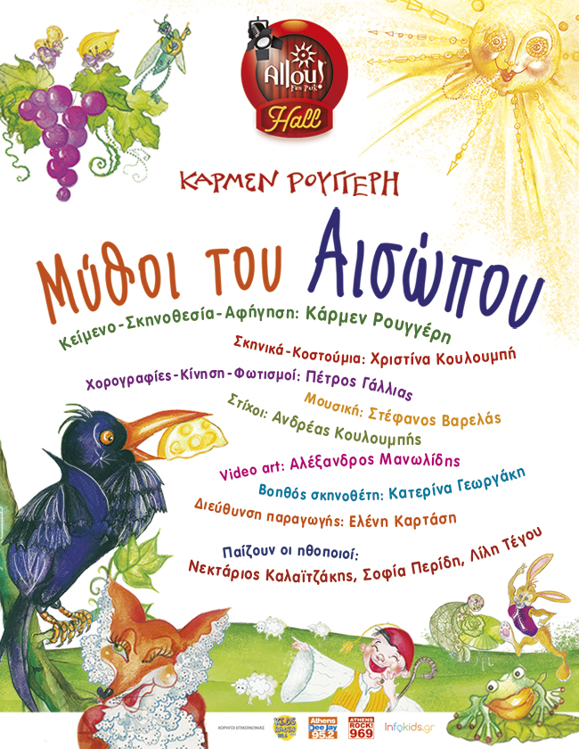 Από το Σάββατο 19 Μαρτίου και κάθε μέρα έως τα μέσα Ιουνίου, η Κάρμεν Ρουγγέρη και οι συνεργάτες της παρουσιάζουν Μύθους του Αισώπου στο Allou! Fun Park.