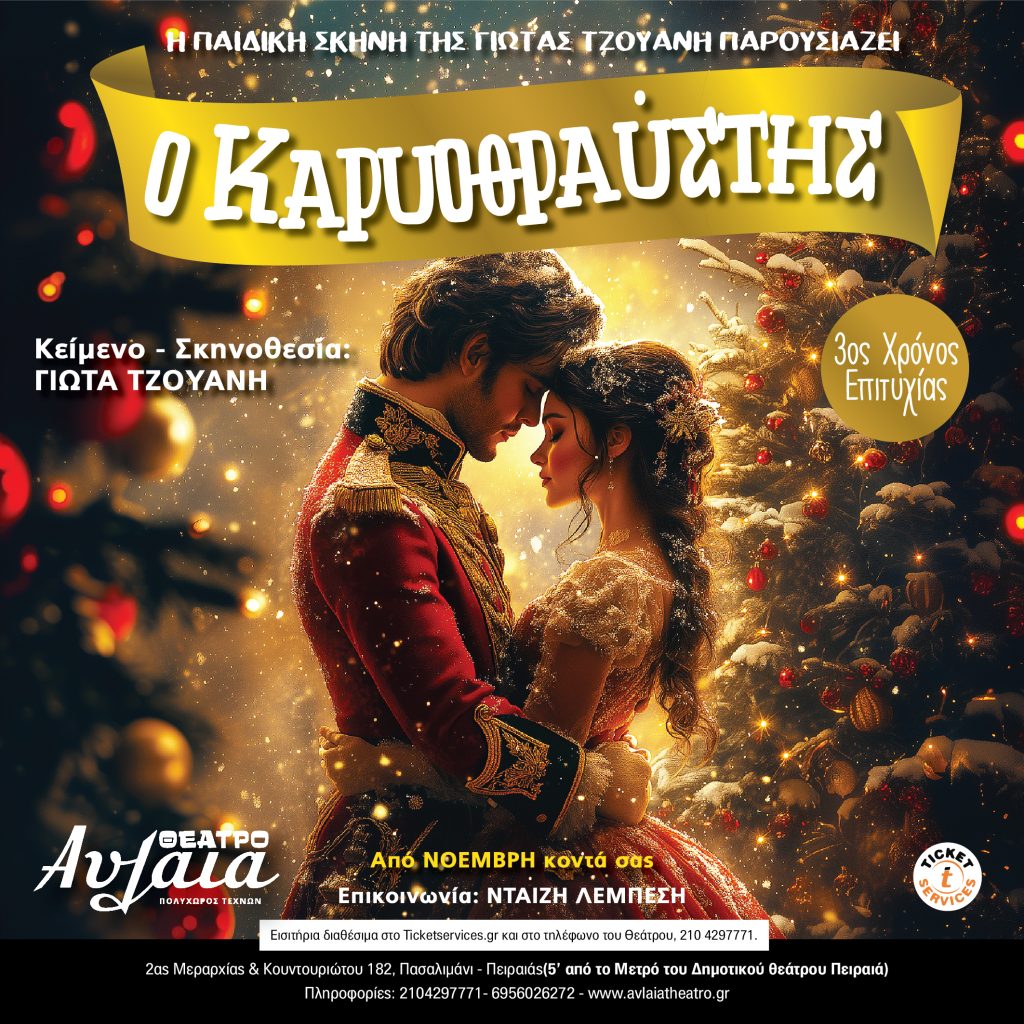 Η Παιδική Σκηνή της Γιώτας Τζουάνη, παρουσιάζει για 3η χρονιά στο Θέατρο Αυλαία στον Πειραιά , μετά την περσινή καλλιτεχνική αλλά και εμπορική επιτυχία, από το Σάββατο 15 Νοεμβρίου 2025 έως 10 Ιανουαρίου 2026 και κάθε Σάββατο στις 17.00 το Παιδικό Θεατρικό Χριστουγεννιάτικο Μιούζικαλ “Ο Καρυοθραύστης “.