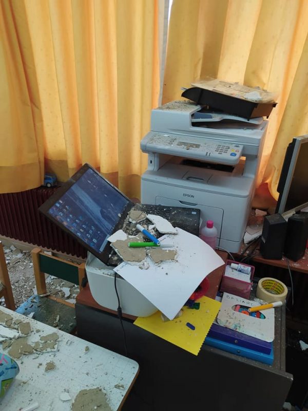 Κομμάτια από σοβάδες έπεσαν πάνω στα τραπεζάκια των μικρών μαθητών, ενώ ευτυχώς δεν υπήρξε κάποιος τραυματισμός.