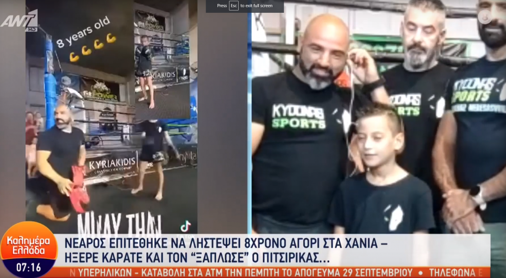 Το συμβάν έκανε γνωστό ο Γιώργος Παπαδάκης, σήμερα, μέσα από την Εκπομπή “Καλημέρα Ελλάδα”, στην οποία καλεσμένοι βρέθηκαν τόσο το 8χρονο αγόρι, όσο και οι ίδιοι οι προπονητές του από τη σχολή Kydonas Sports.