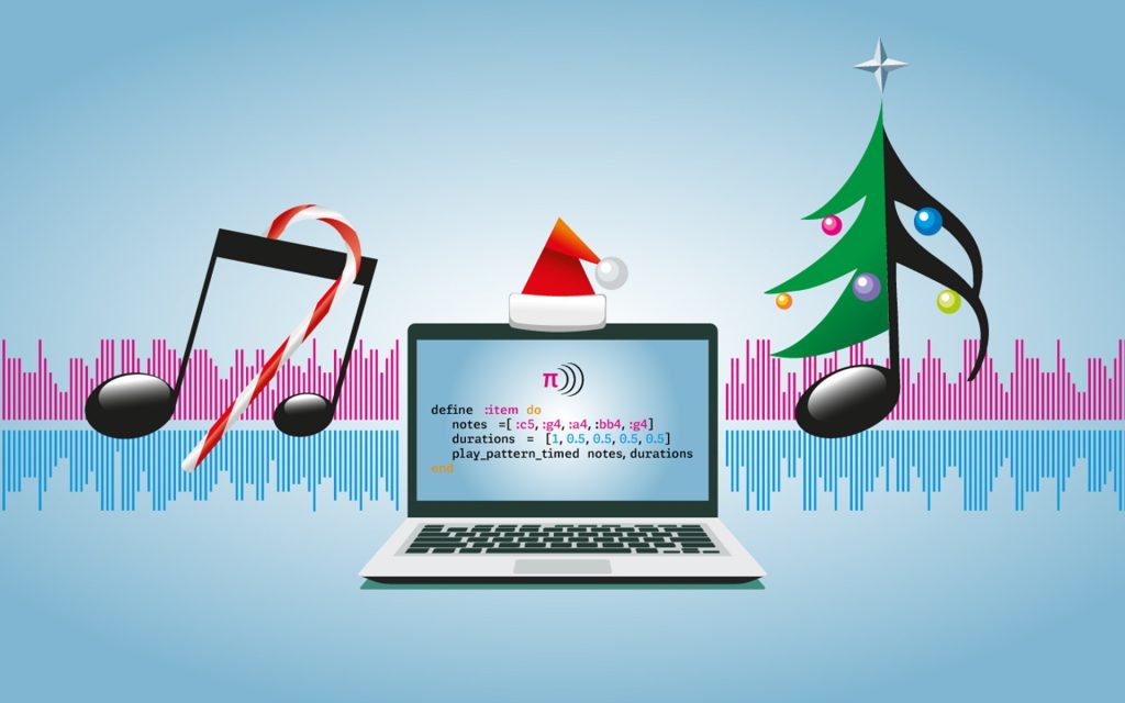 Θες να δεις πώς ένα τραγούδι μπορεί να γίνει… κώδικας; Έλα στο εργαστήριο Ο DJ των Χριστουγέννων, όπου θα συνθέσουμε χριστουγεννιάτικες μελωδίες με κώδικα στο περιβάλλον Sonic Pi.
