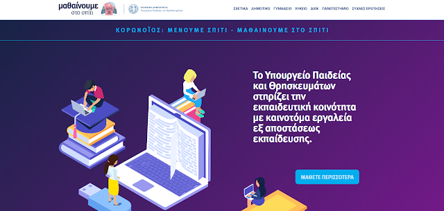 - mathainoumestospiti.gov.gr: Ιστοσελίδα με όλες τις χρήσιμες πληροφορίες για τη δομή, το περιεχόμενο, την πρόσβαση και τη λειτουργία της εξ αποστάσεως εκπαίδευσης όλων των βαθμίδων.