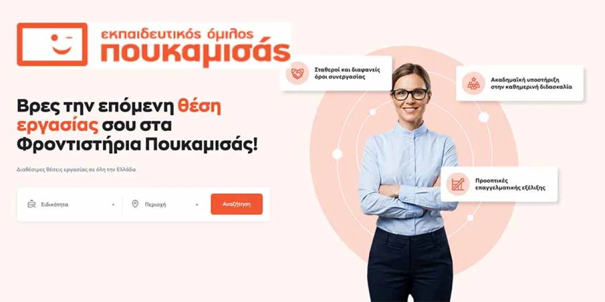 Ο Εκπαιδευτικός Όμιλος Πουκαμισάς παρουσιάζει τη νέα ψηφιακή πλατφόρμα careers.poukamisas.gr, ενισχύοντας τον τρόπο με τον οποίο εκπαιδευτικοί και επαγγελματίες συνδέονται με το δίκτυο των Φροντιστηρίων Πουκαμισάς.