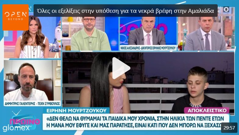 Αν αυτού την ίδια μέρα η Ειρήνη Μουρτζούκου σε μια συνέντευξη ποταμό 100 λεπτών έχει πει ότι έκανε δύο παιδιά με έναν άντρα που δεν θέλει να κατονομάσει, ότι τον γνώρισε σε παρέα ότι δεν είναι στην Αθήνα ούτε ζει εδώ, και πως έκανε σχέση μαζί του για να κάνει παιδιά και μόνο. Όσο για το αν συναισθηματικά την κάλυψε αυτός ο άνθρωπος, είπε ότι δεν αισθανόταν τίποτα γι αυτό και πως αυτός ήξερε ότι της «αρέσουν οι γυναίκες». Όταν όμως του είπε ότι μπορεί να τον καλέσει ο εισαγγελέας αν είναι να μαρτυρήσει τότε εκείνος είπε ότι θα έρθει χωρίς δεύτερη συζήτηση.